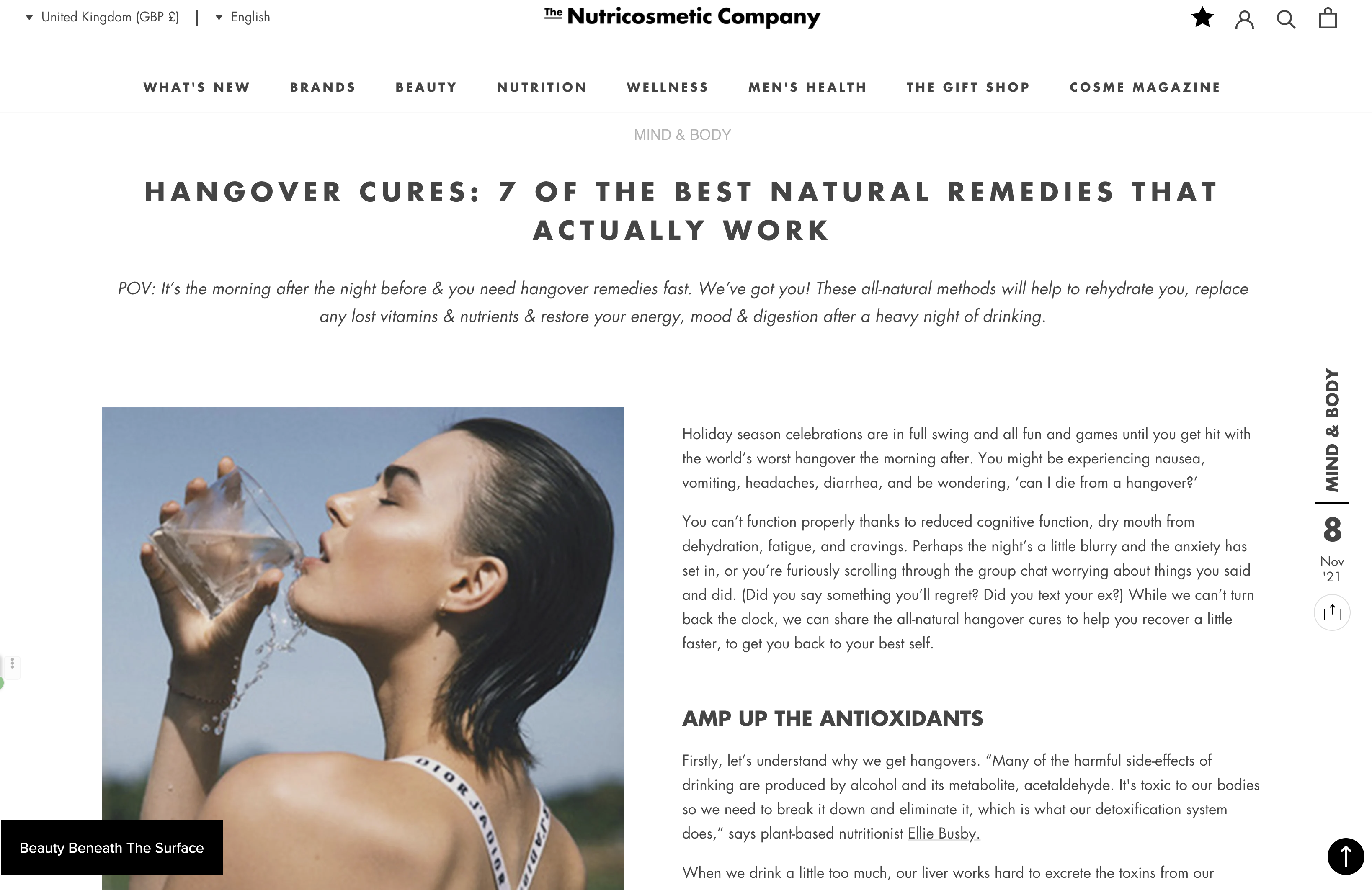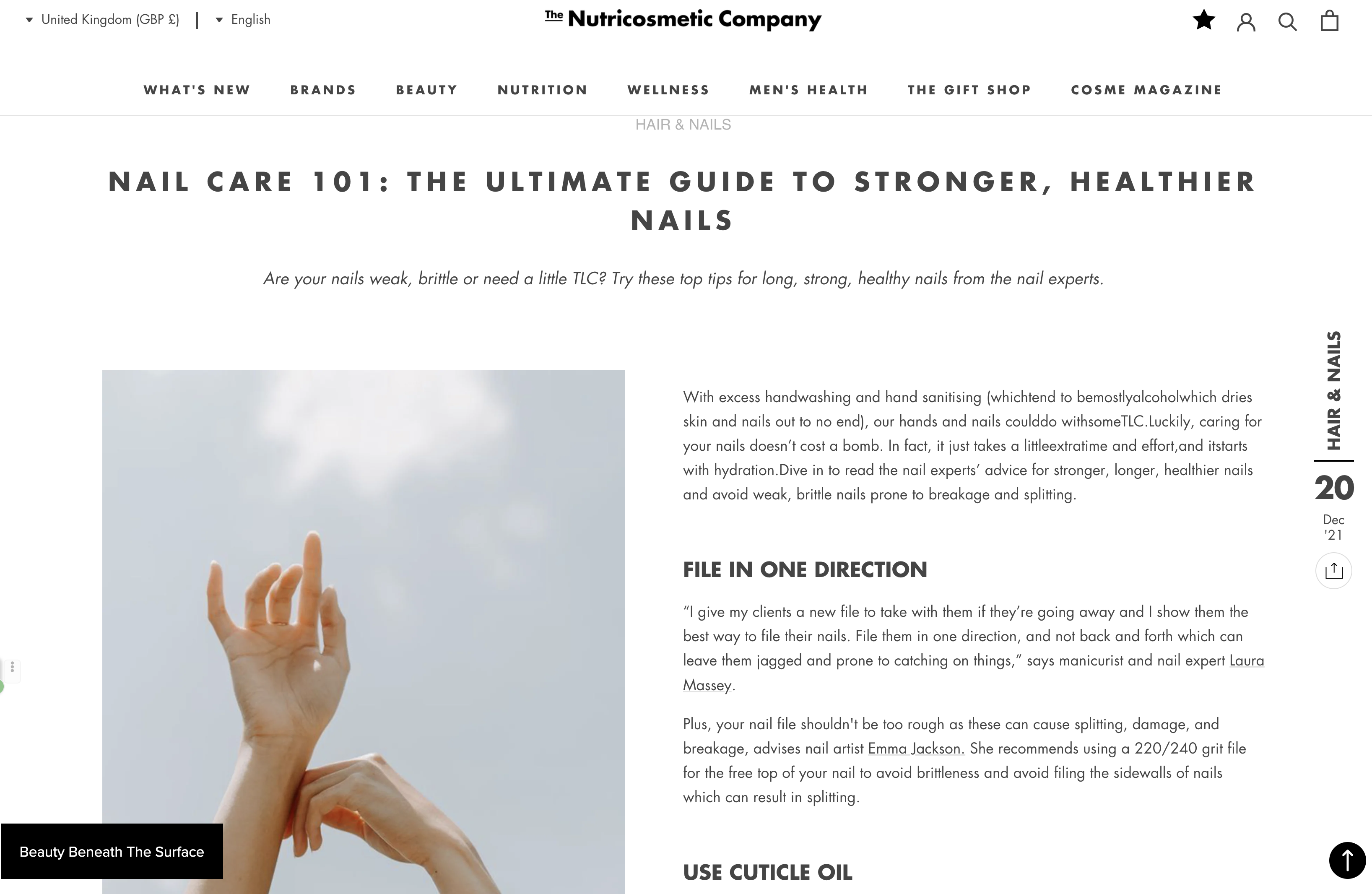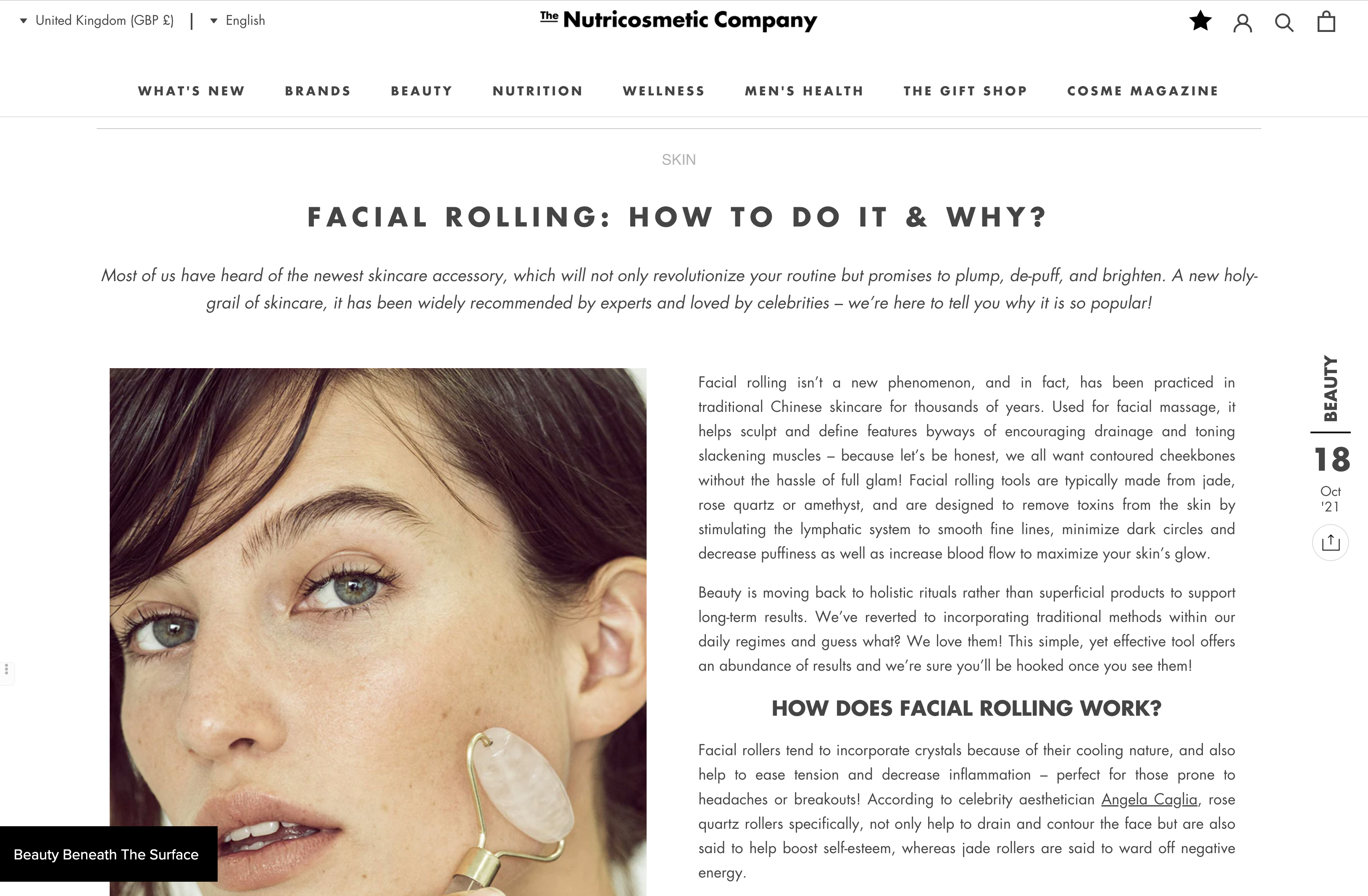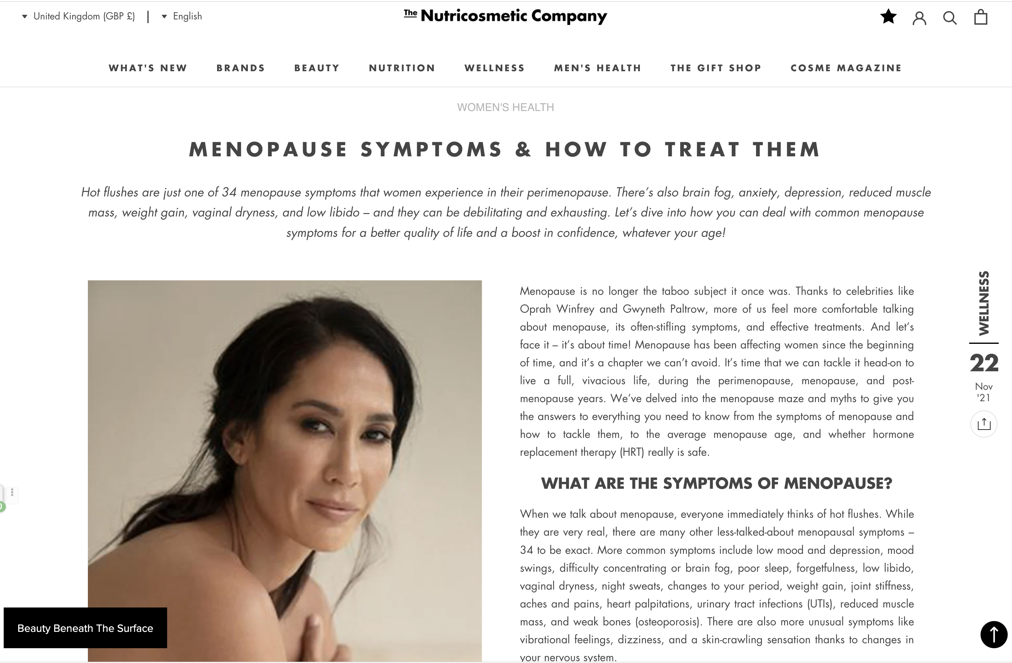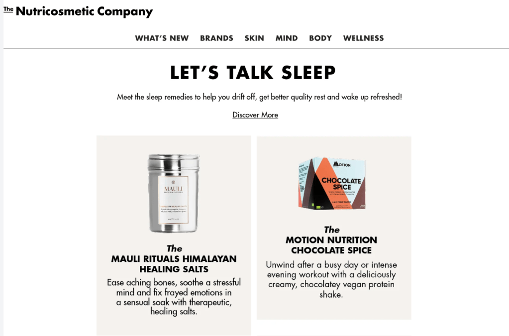 I contributed to the copy for each campaign we ran at The Nutricosmetic Company, including the Homepage copy, and the collection, campaign and brand descriptions.