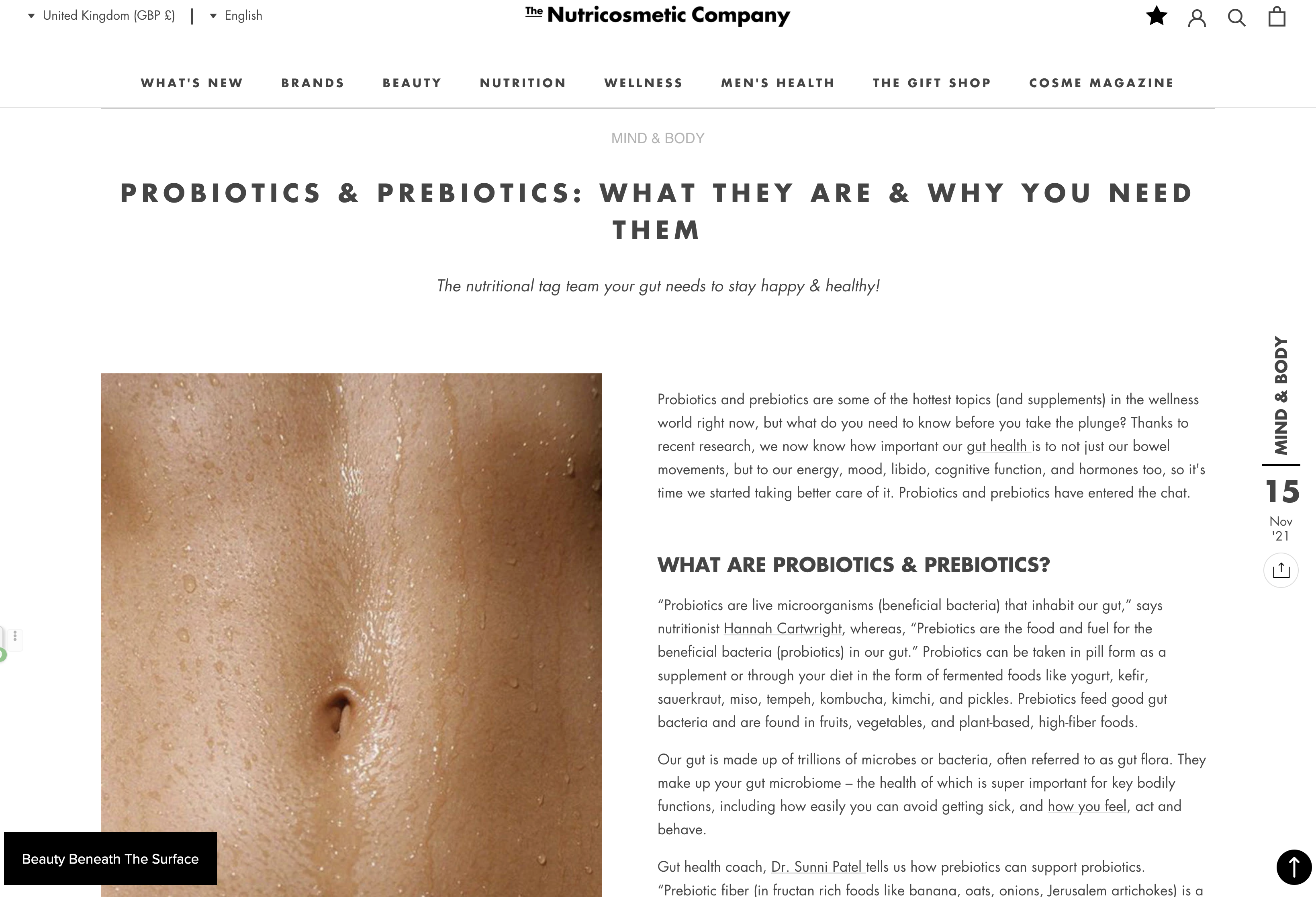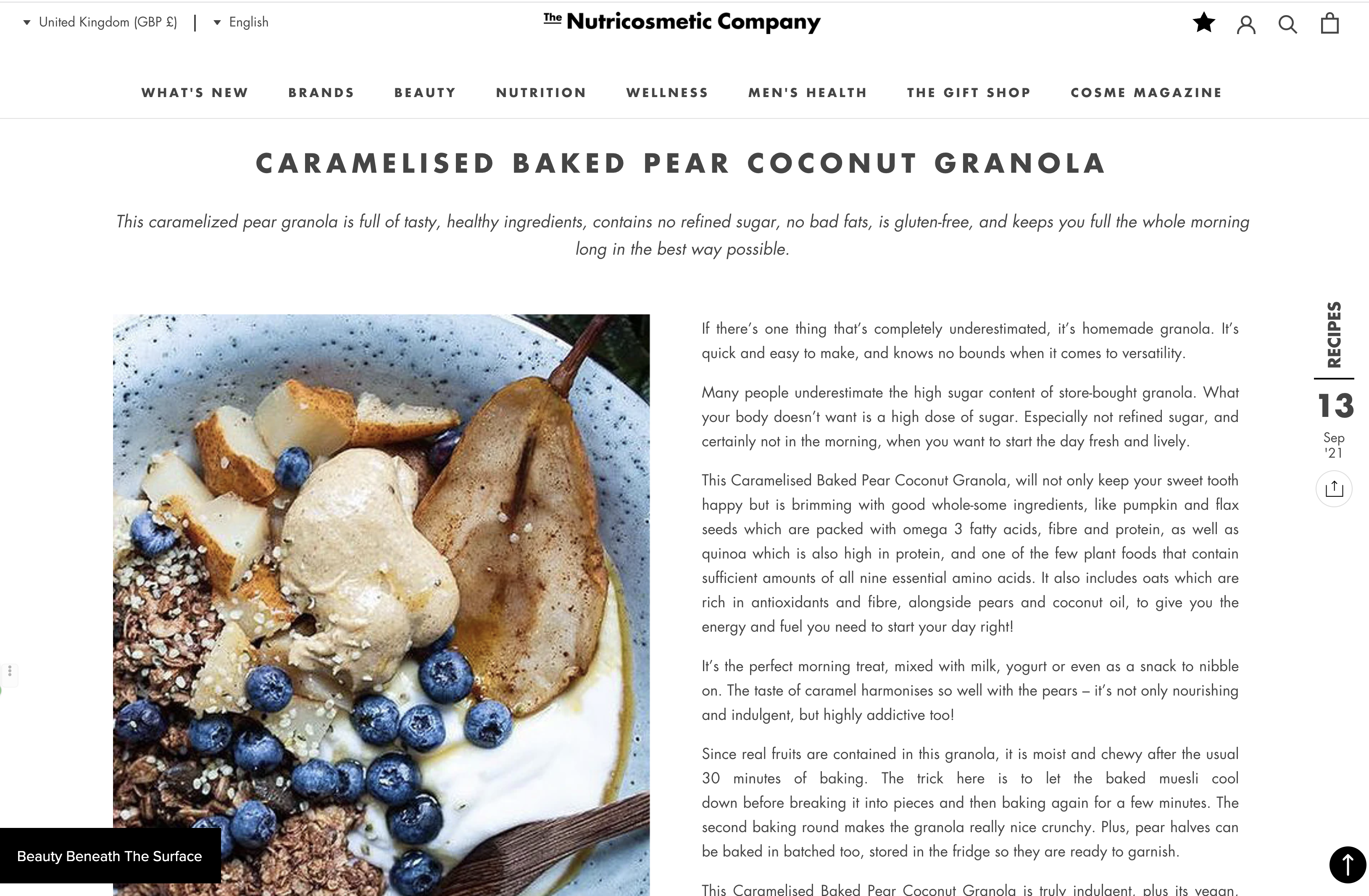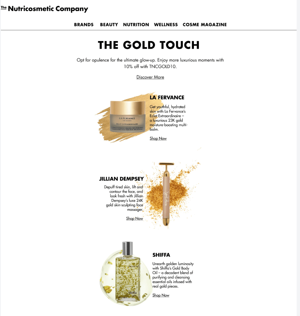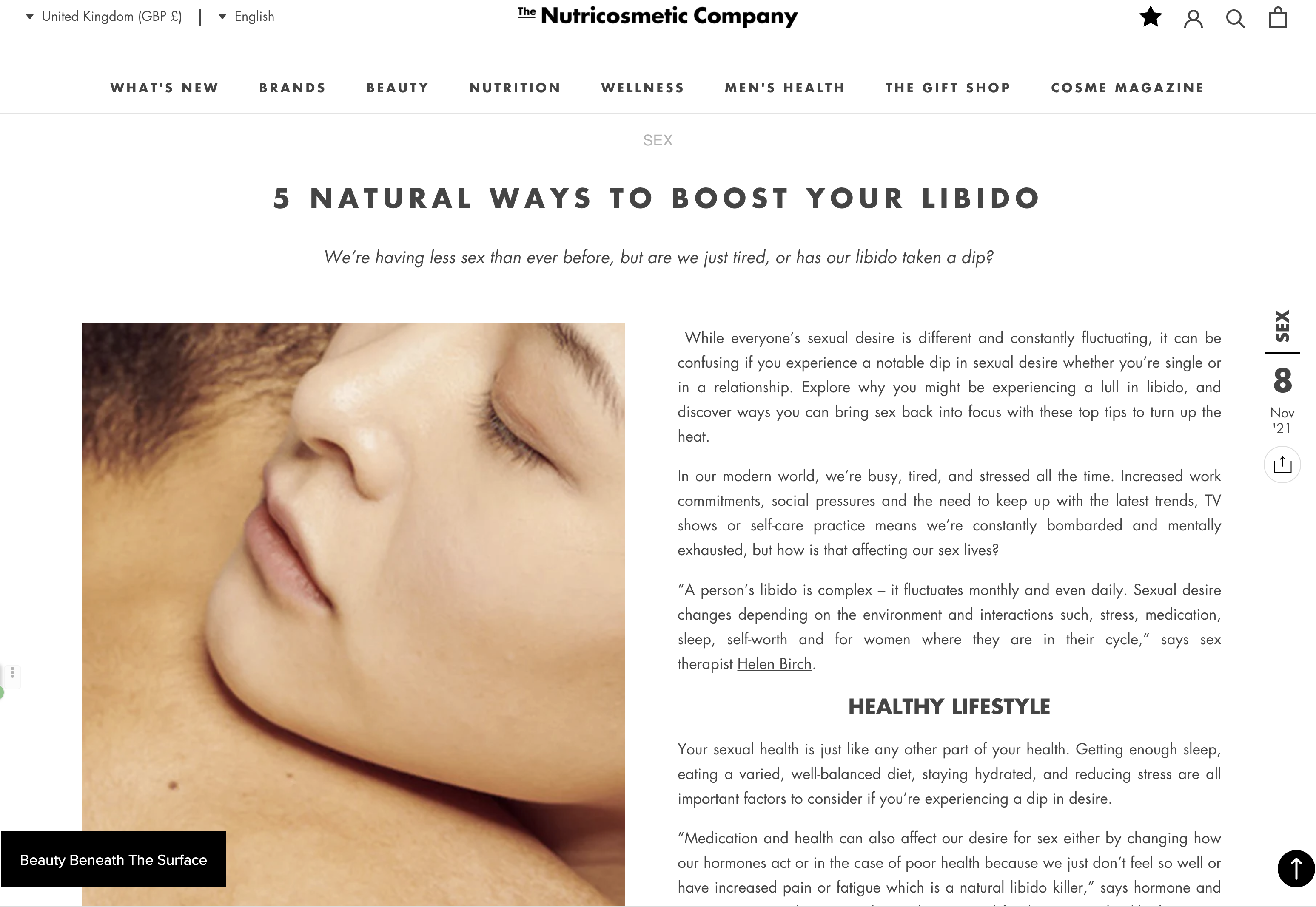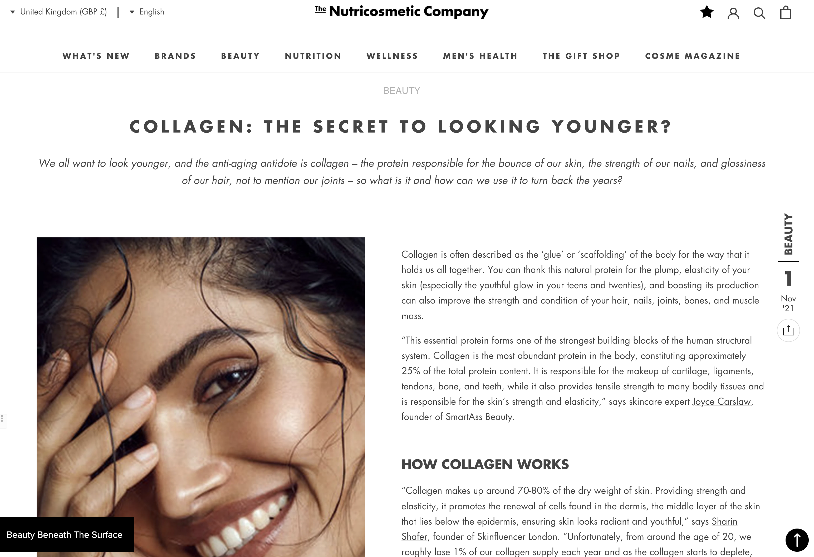 I contributed to the copy for each campaign we ran at The Nutricosmetic Company, including the Homepage copy, and the collection, campaign and brand descriptions.