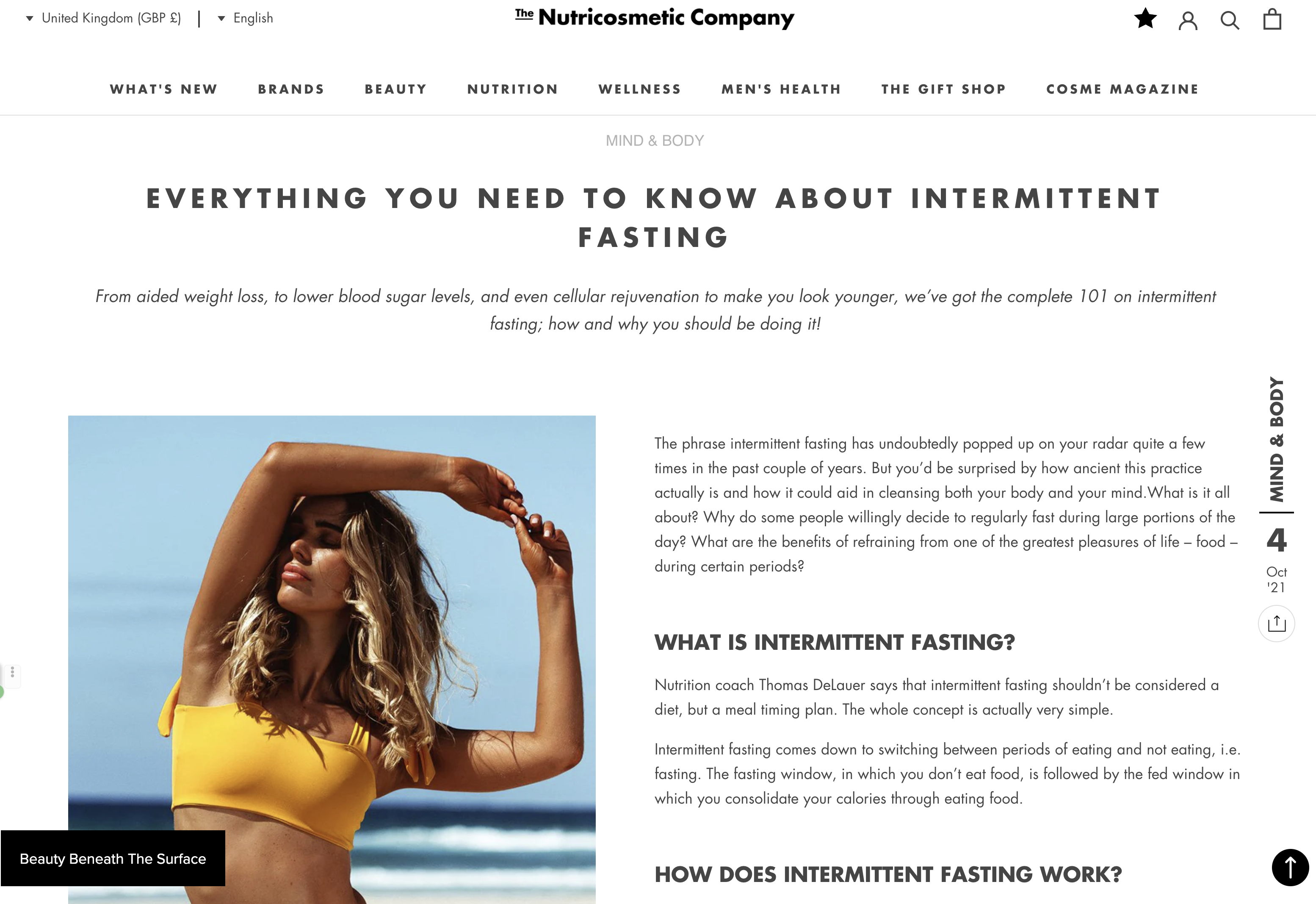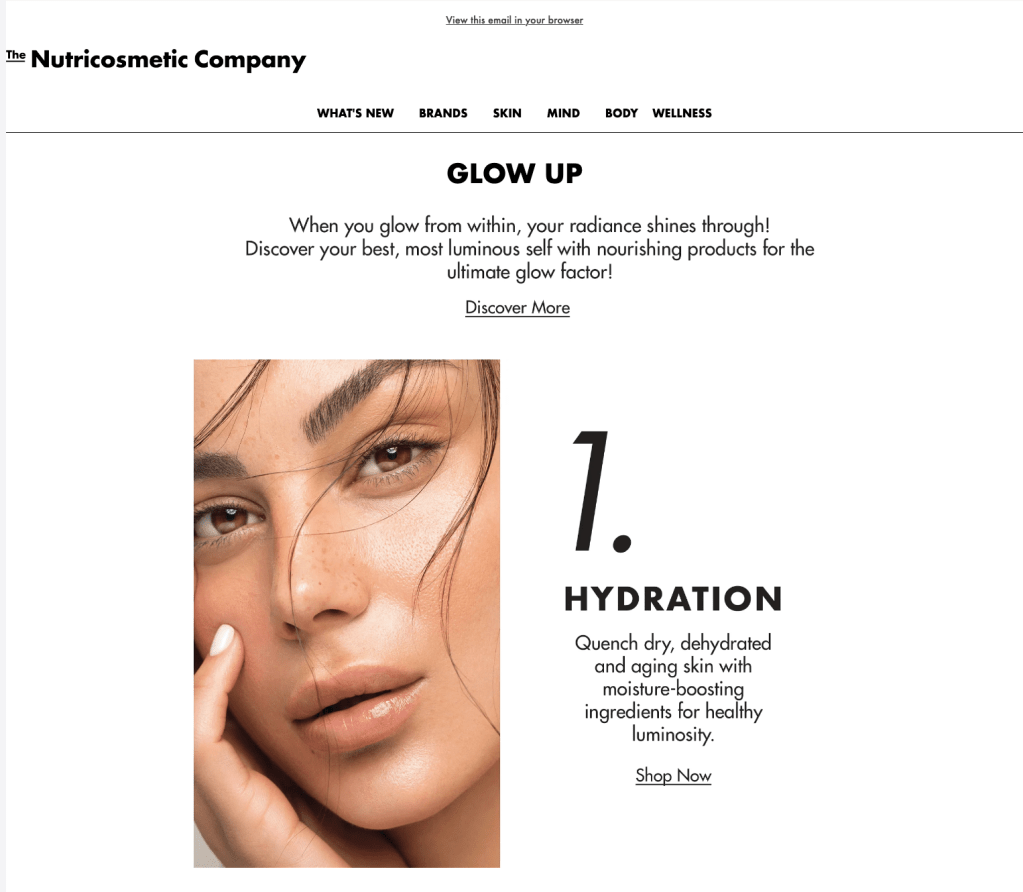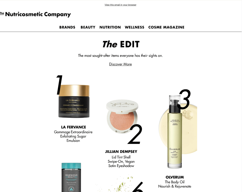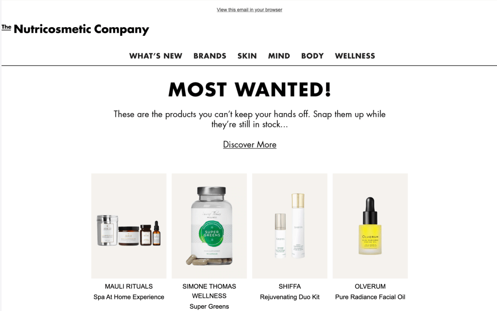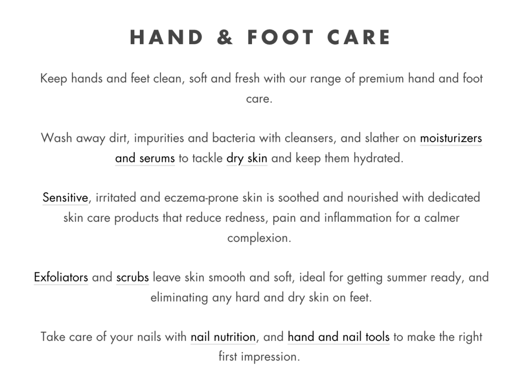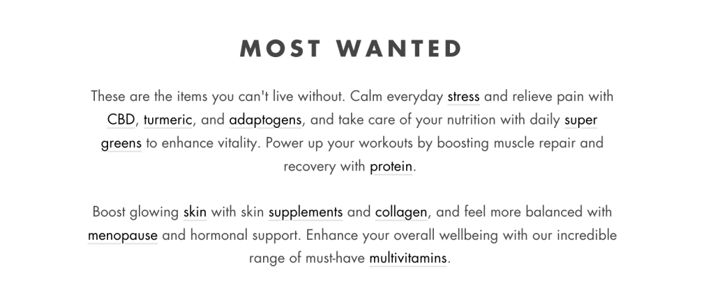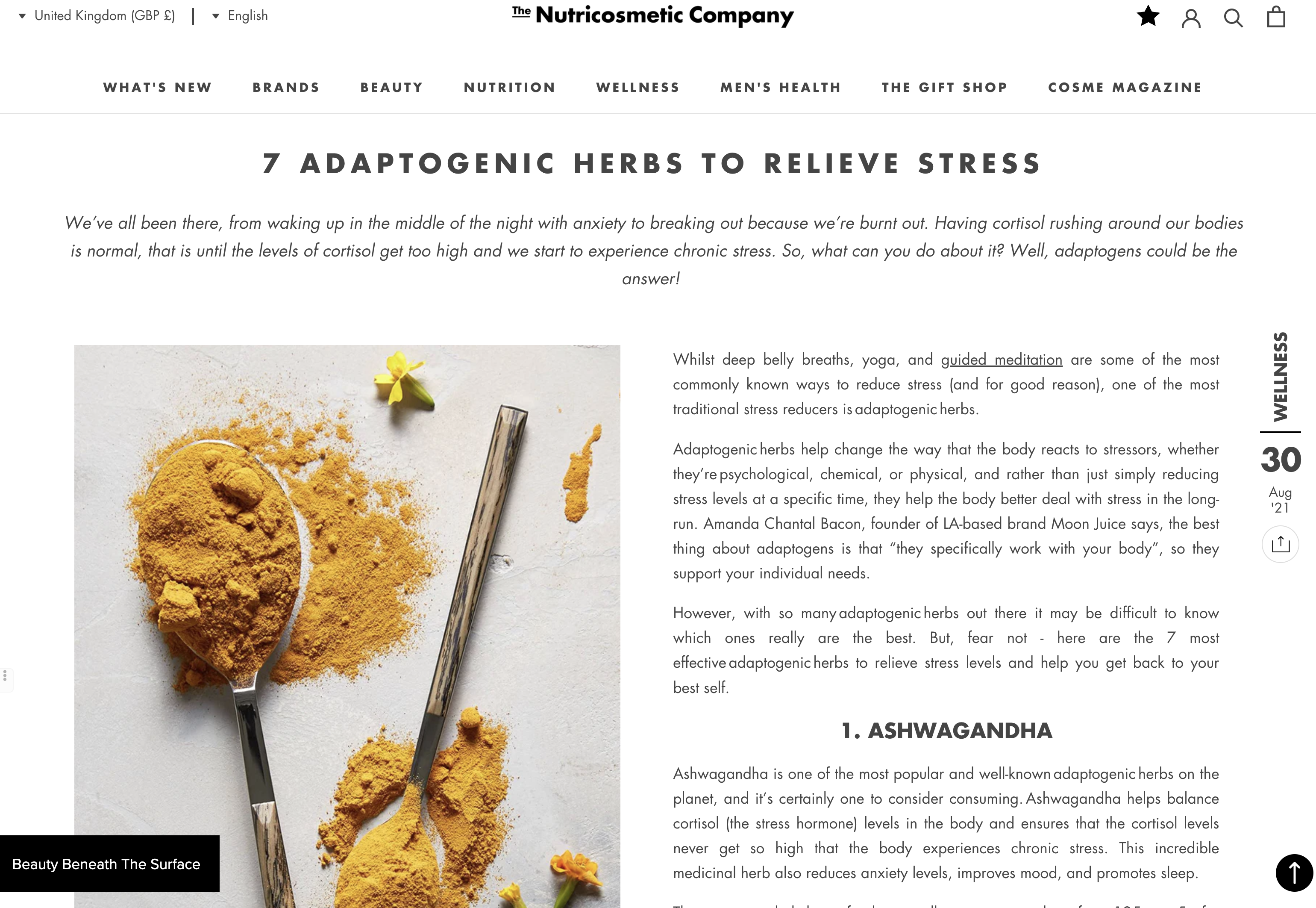 I contributed to the copy for each campaign we ran at The Nutricosmetic Company, including the Homepage copy, and the collection, campaign and brand descriptions.