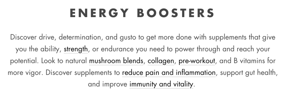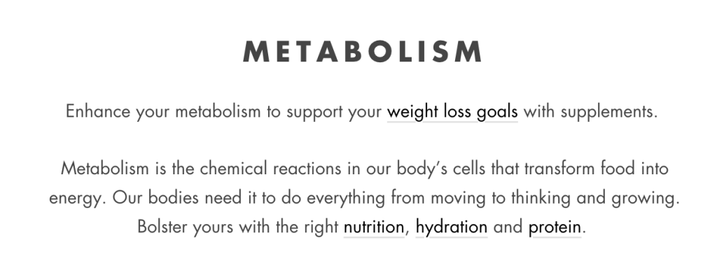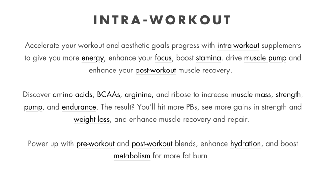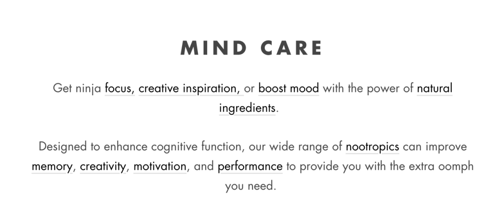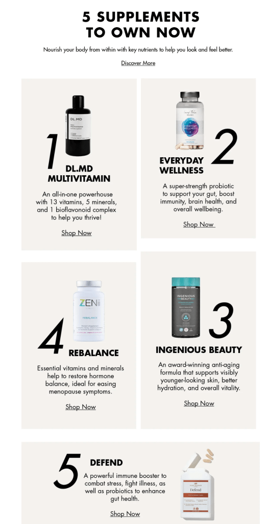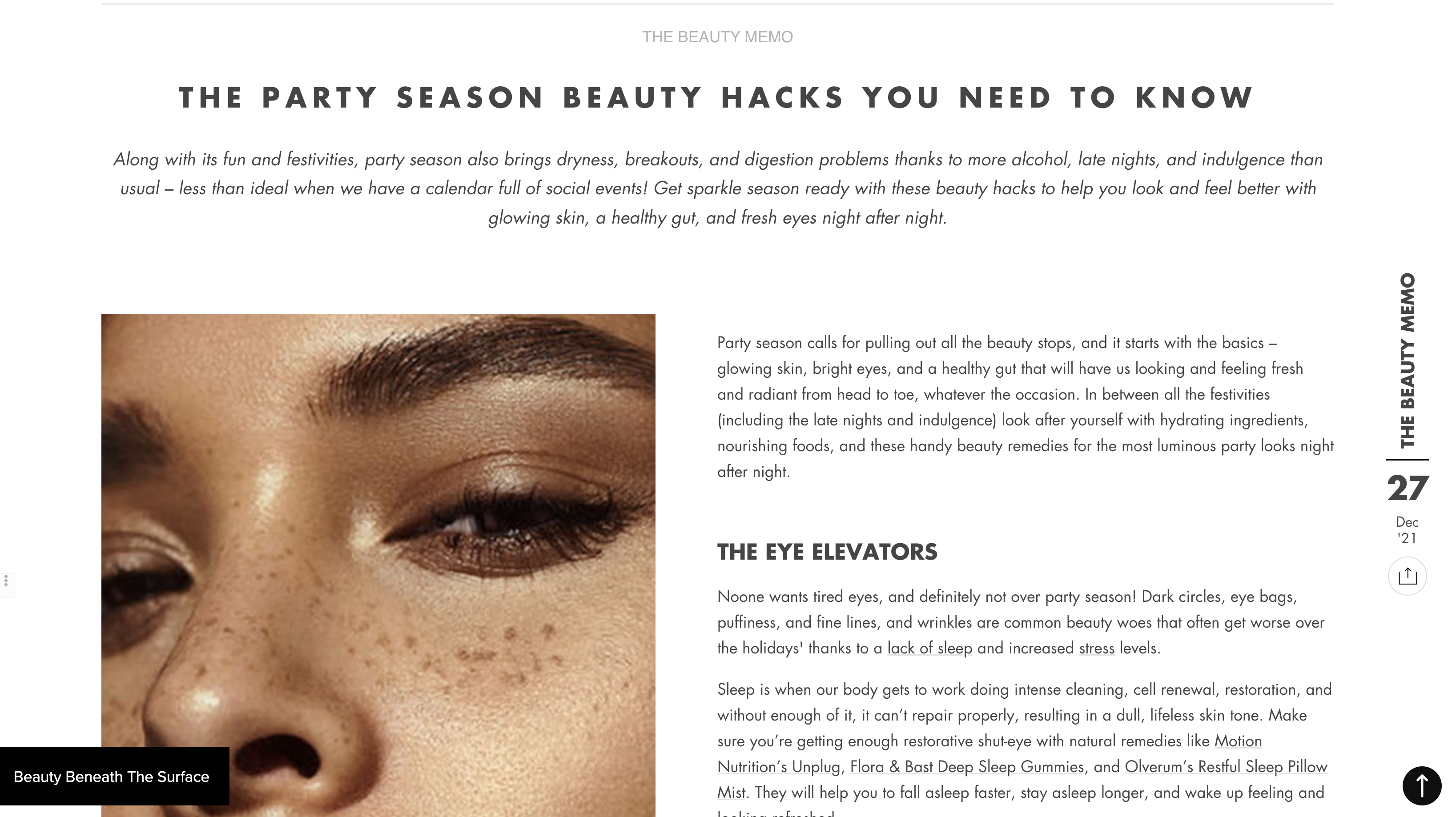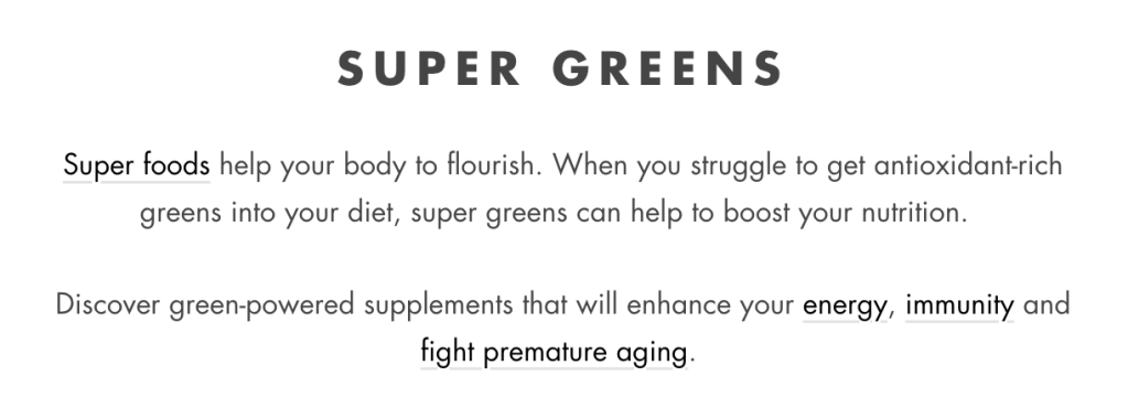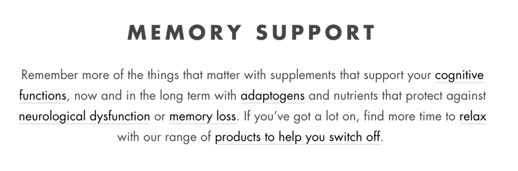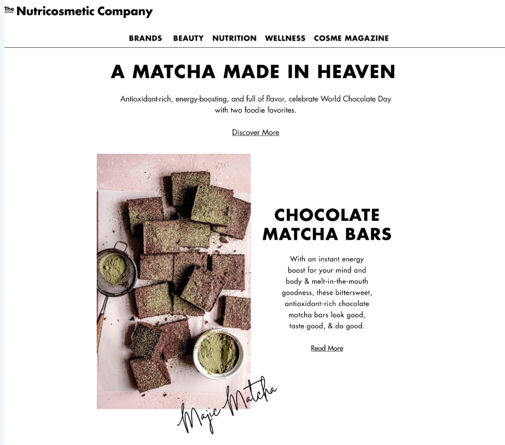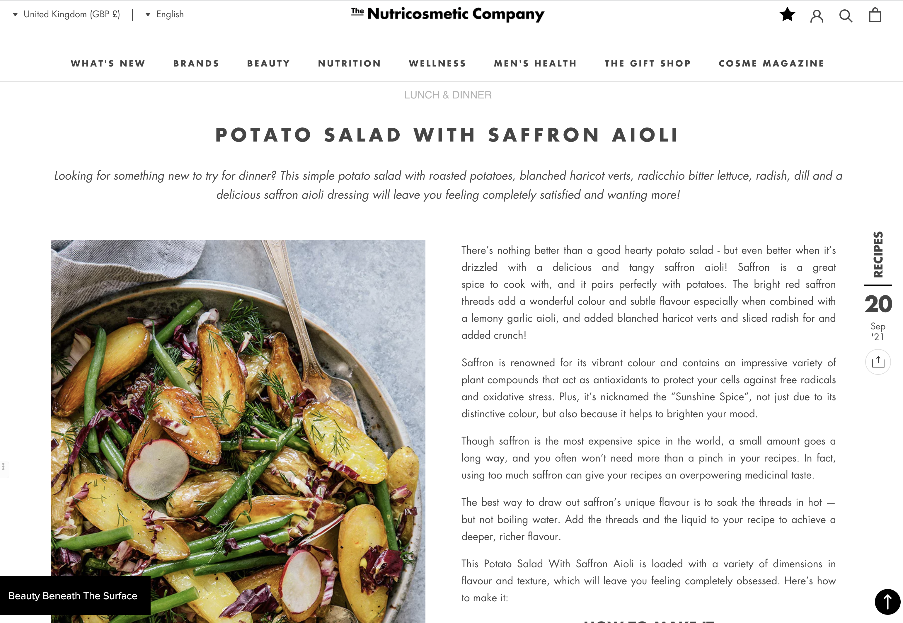 I contributed to the copy for each campaign we ran at The Nutricosmetic Company, including the Homepage copy, and the collection, campaign and brand descriptions.