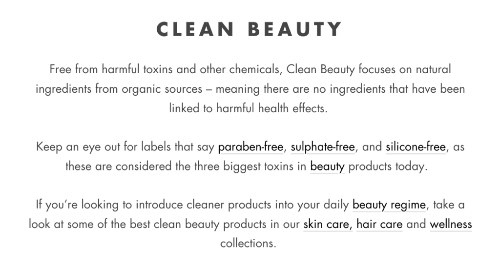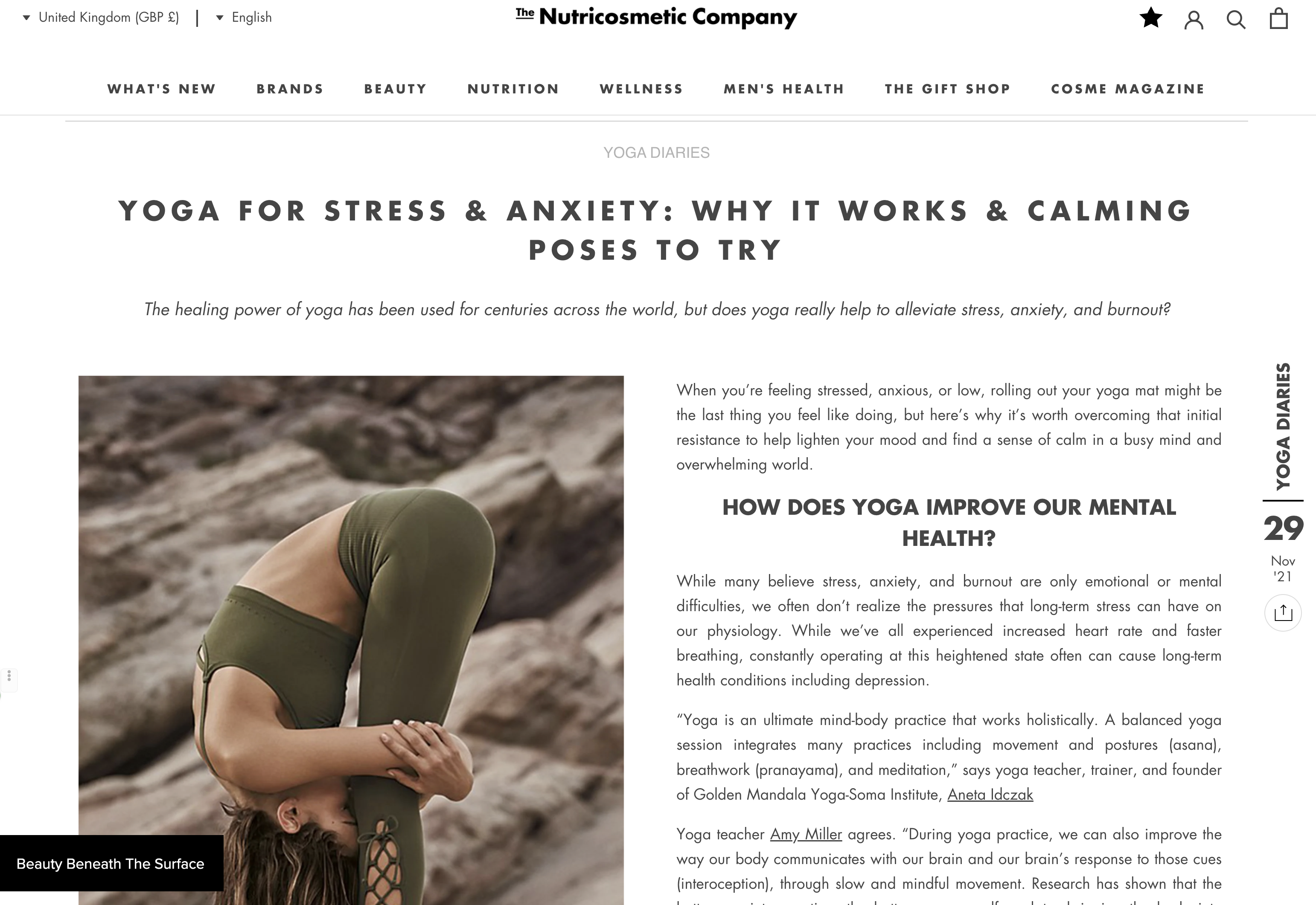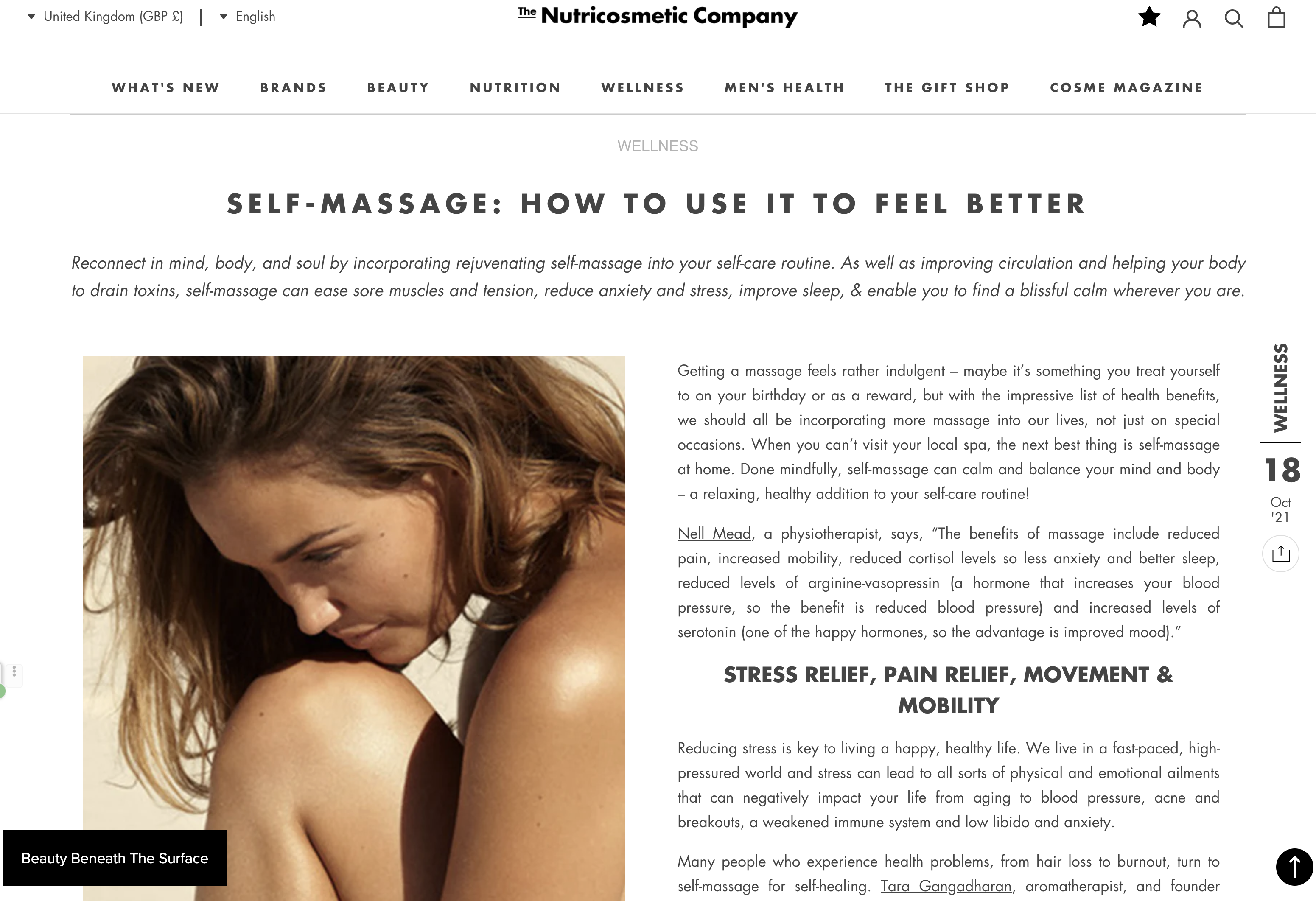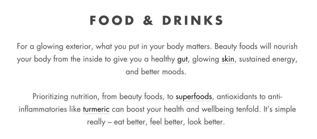 I write blog posts, email marketing copy, e-commerce landing pages, product descriptions, website copy and social media captions covering beauty, wellness, health and fitness. Scroll down to view examples of my work.