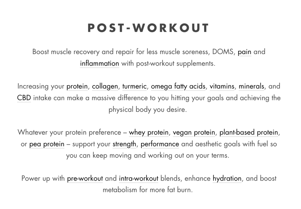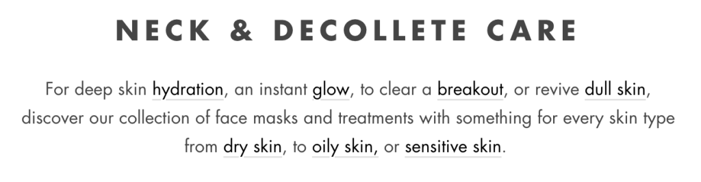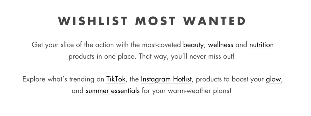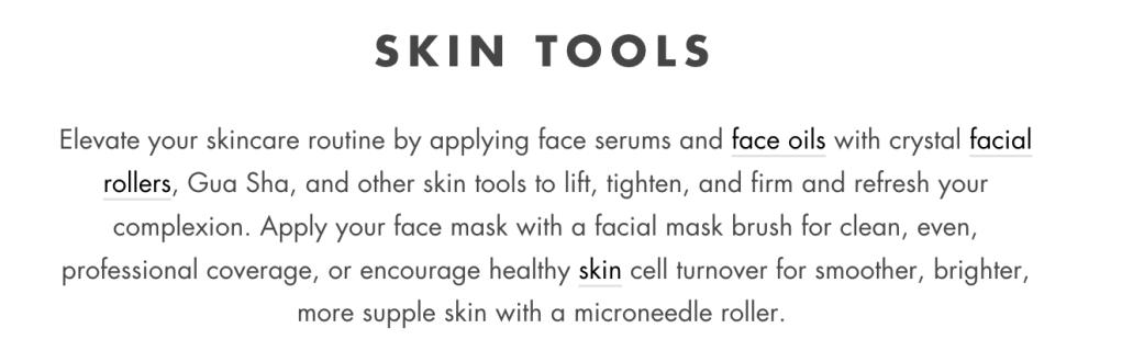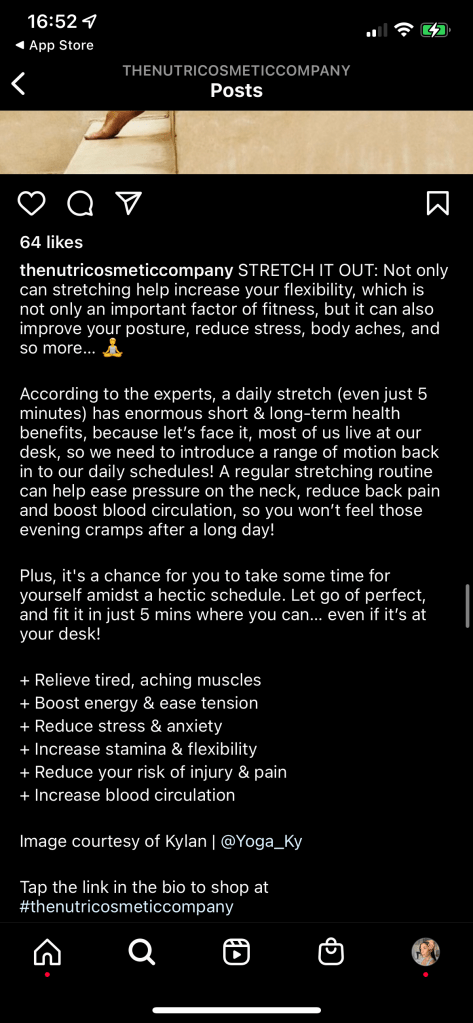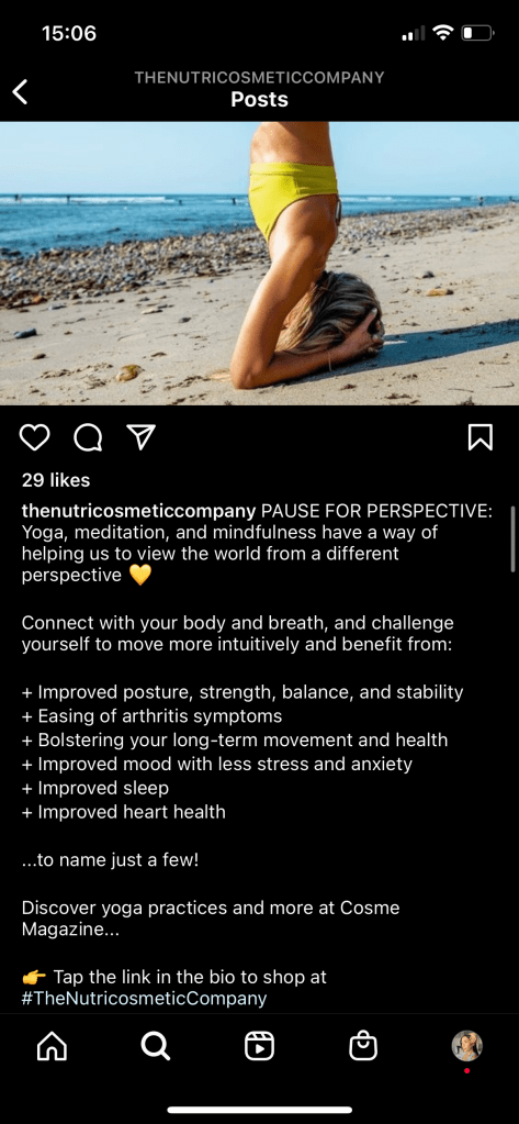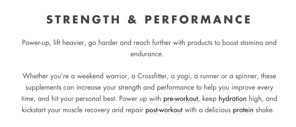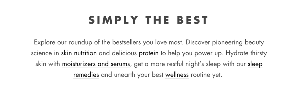 I write blog posts, email marketing copy, e-commerce landing pages, product descriptions, website copy and social media captions covering beauty, wellness, health and fitness. Scroll down to view examples of my work.