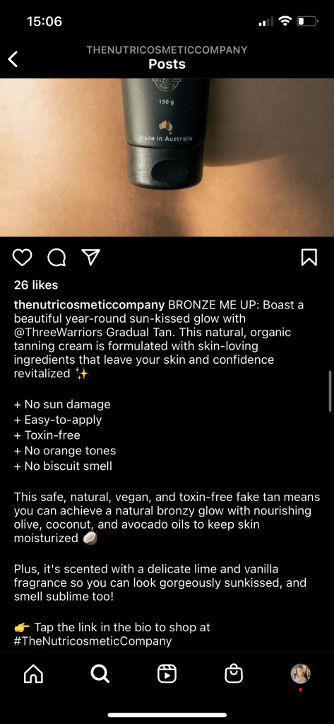 - Three Warriors – Toxic-free, organic, and natural-looking fake tan.