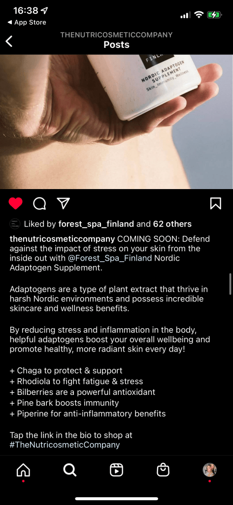 - Forest Spa Finland – An adaptogenic superfood supplement to support skin health and appearance.
