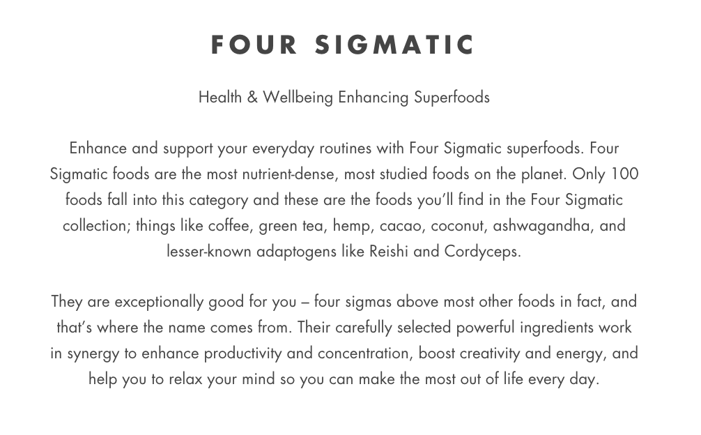 - Four Sigmatic – Superfoods made with adaptogens to improve health and wellbeing, including energy, sleep and focus.
