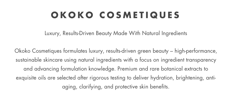 - Okoko Cosmetiques – Luxury, sustainable skincare and beauty made with natural ingredients.
