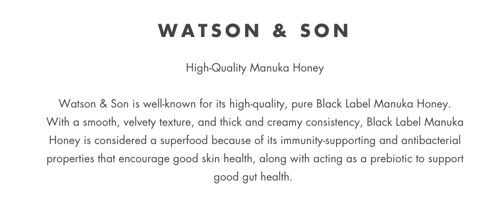 - Watson & Son – High-quality, immune system-supporting, antibacterial New Zealand honey.